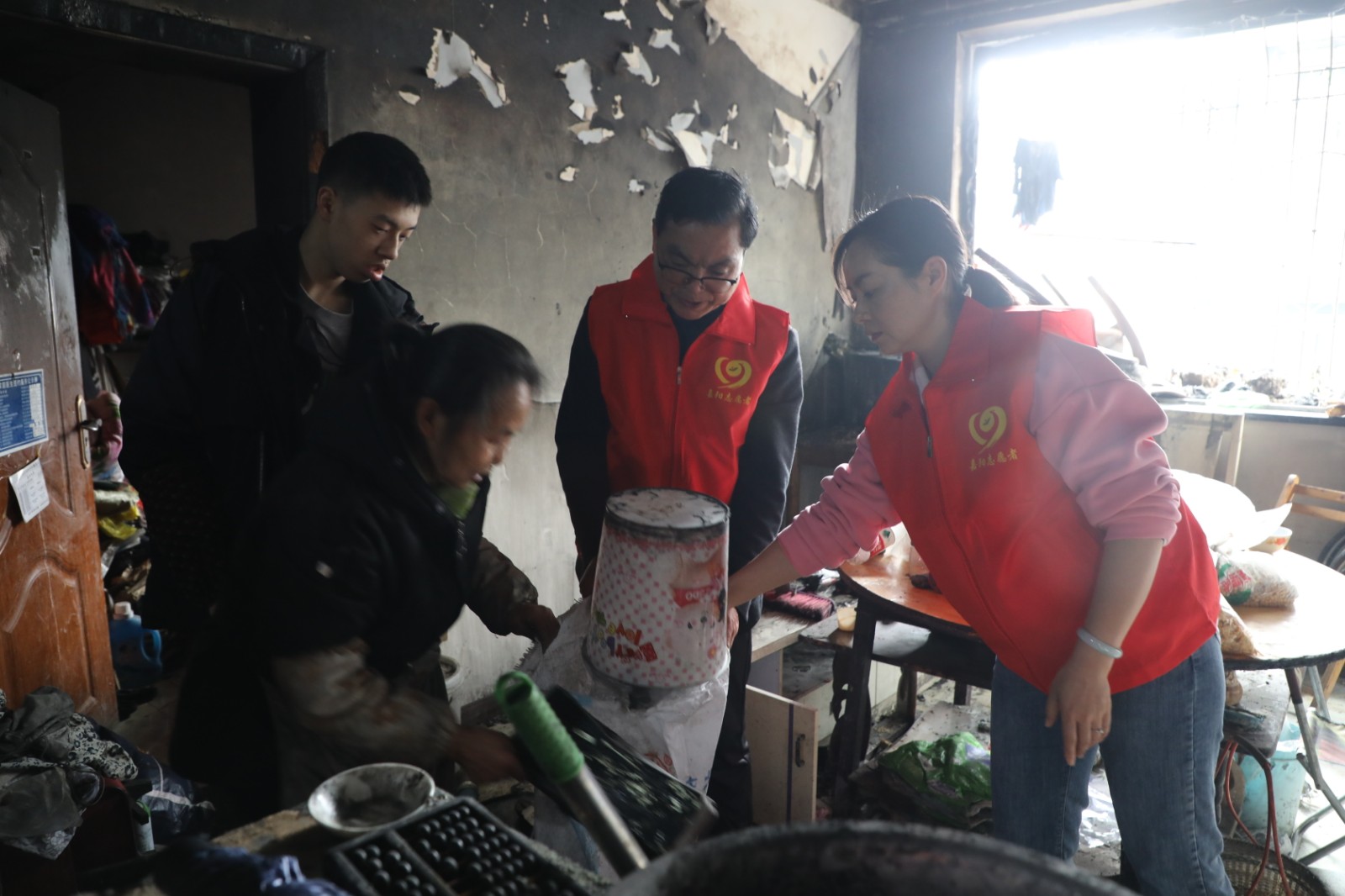 宋國新是智障人員,他的母親是智力2級(jí)殘,父親在一次意外事故中死亡,目前跟隨爺爺奶奶生活,住在礦區(qū)西區(qū)。他的爺爺奶奶也已經(jīng)80多歲了,早已失去勞動(dòng)能力。機(jī)關(guān)第一黨支部在鄉(xiāng)村振興中與他結(jié)對(duì)以來,多次到他家中看望他們,幫助他們解決生活中的實(shí)際困難。3月3日,由于電線線路失火,宋國新家中財(cái)物毀于一旦。機(jī)關(guān)第一黨支部得知情況后,第一時(shí)間組織黨員到宋國新家中看望他們,向他們送去米、面、油等生活用品,為他們打掃火災(zāi)現(xiàn)場(chǎng),幫助他們?yōu)暮笾亟?。?jīng)過近1個(gè)小時(shí)的清掃,完成了火災(zāi)現(xiàn)場(chǎng)的清理工作。