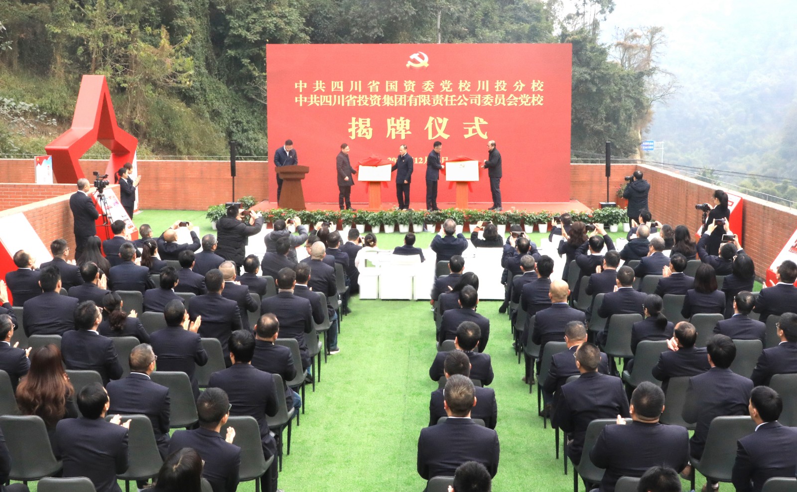 省委組織部、省委黨校、省國(guó)資委相關(guān)處室負(fù)責(zé)人、省國(guó)資委黨校及旅投分校副校長(zhǎng),以及川投集團(tuán)相關(guān)部門、部分所屬企業(yè)負(fù)責(zé)人、員工代表等100余人參加揭牌儀式。