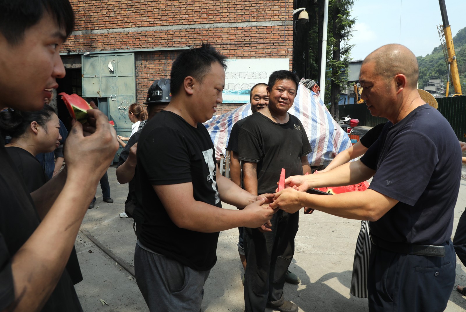 進(jìn)入8月,高溫天氣持續(xù)作威,高溫作業(yè)的職工異常辛苦。范勤英帶領(lǐng)機關(guān)第三黨支部的黨員們來到高溫一線,看望煤礦機電隊機組班、炭壩高溫作業(yè)的職工?!皫煾祩冃跉?,吃塊西瓜涼快下,吃碗冰粉解下暑”,范勤英一邊招呼正在辛勤工作的職工們,一邊為他們送上清甜可口的西瓜、涼爽解暑的冰粉,關(guān)切地詢問他們在高溫時段的作業(yè)情況,叮囑他們一定要合理安排作息時間,有效預(yù)防中暑,切實保障自身安全。同時要求煤礦黨政工團切實采取職工防暑降溫措施,最大限度減少高溫天氣給職工身心健康帶來的影響,確保他們平安度夏。