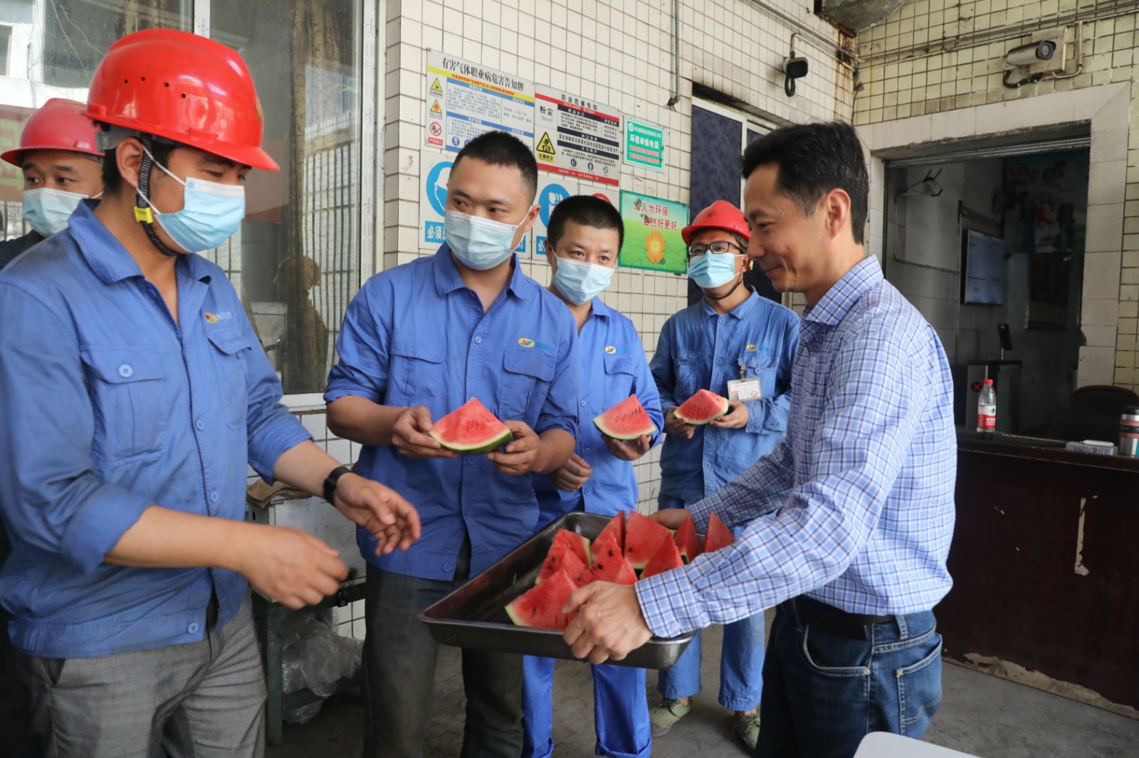 6月7日,川投集團(tuán)副總經(jīng)理張昊、工會(huì)副主席白翠紅一行到嘉陽(yáng)看望慰問(wèn)一線(xiàn)高溫崗位職工,為他們送上清涼和關(guān)懷。